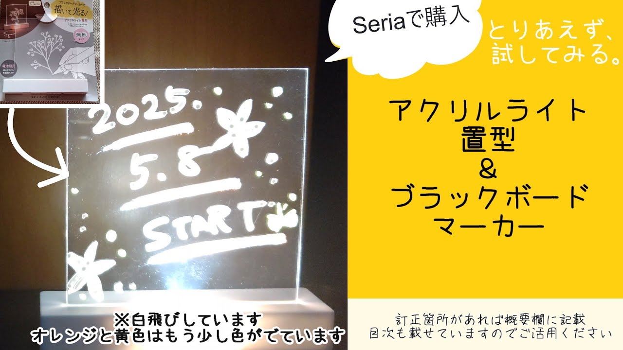 タイトル100均セリアのLEDアクリルライトとワッツとダイソーのウィンドウマーキングペン、蛍光ブラックボードマーカー(ホワイトボードマーカーでも検証) #ブラックボードマーカー #100均 #文房具