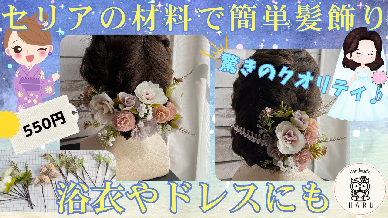 | タイトル | 【100均セリアで簡単DIY!浴衣やドレスに合う高見え髪飾りの作り方】 |